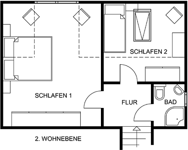 Wohnebene 1 Schlafzimmer mit Doppelbett,